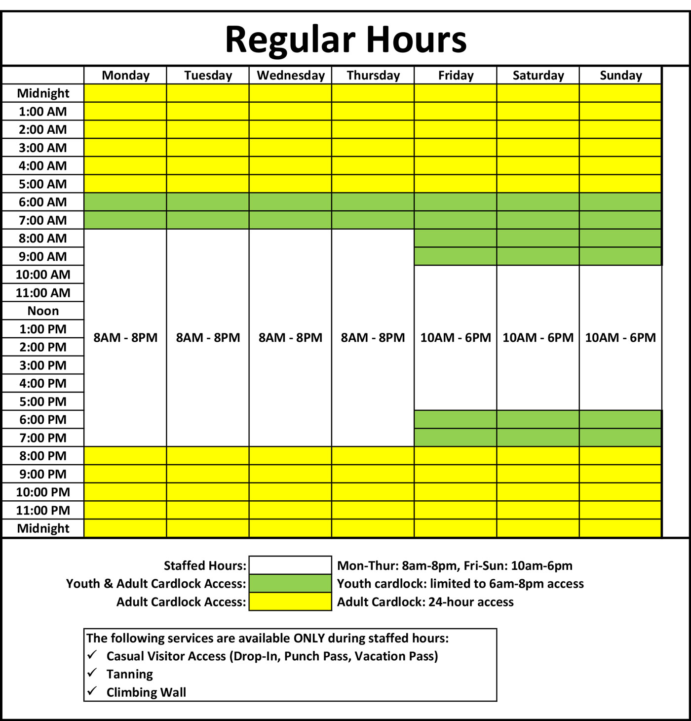 Mon-Thur 8am-8pm Fri-Sun 10am-6pm